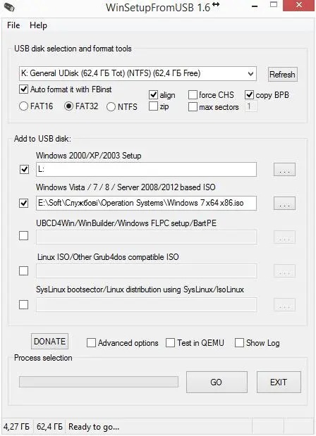 Таким самим чином ти можеш додати скільки завгодно операційних систем та дисків-реаніматорів. Зверни увагу, що програма дозволяє встановлювати на одну флешку усі типи операційок одночасно. Наприклад, на моїй флешці присутні Windows XP/7/8.1 32bit/8.1 64bit, і вони абсолютно між собою не конфліктують – WinSetupFromUSB просто розподіляє їх по різних папках під різними назвами. А що іще цікаво – якщо твій образ диска займає більше ніж 4Гб, що заборонено на файловій системі FAT32, то програма сама розділить його на декілька частин, а при встановленні просто зчитає файл із уривків. Звичайно, можна відформатувати флешку і в системі NTFS, але це не дуже добре впливає на тривалість життя самої флешки, тому от такий хід конем.