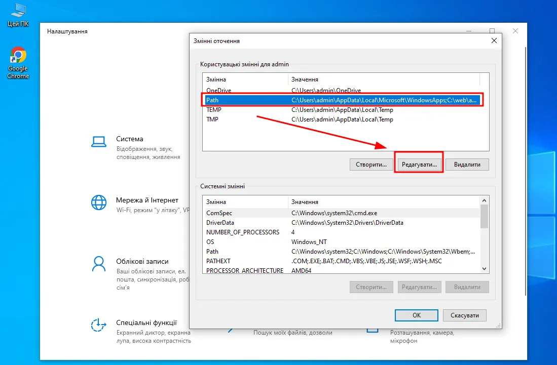 Також для зручності варто додати шлях до сервера у змінну оточення Windows: