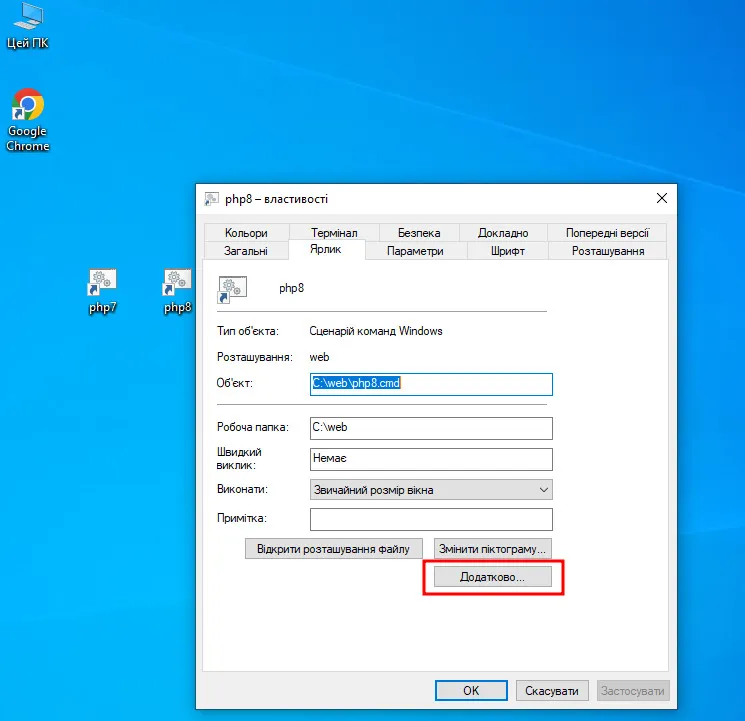 В цьому ж місці створюємо файл php7.cmd із схожим вмістом: